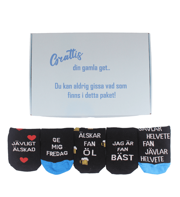 The presentation is as irresistible as the socks themselves – a bright blue gift box with the words “Happy Birthday you old goat…you’ll never guess what’s in this package.” Give this gift box and guarantee laughter, surprise, and a whole lot of unexpected twists!