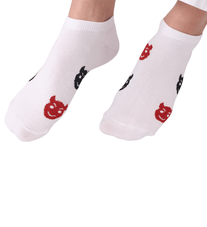 Varokaa vihaisia jalkoja – valkoiset nilkkasukkimme piruhymiöillä vievät asenteesi uudelle tasolle! Nämä pienet paholaisen emojit jaloissasi paljastavat täydellisesti villin puolesi.