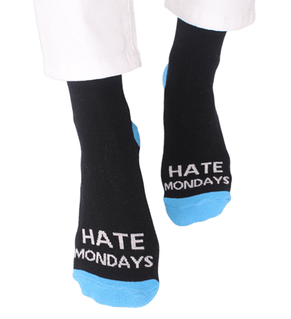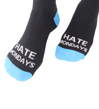 Arga strumpor i hög kvalitet med budskapet HATE MONDAYS.